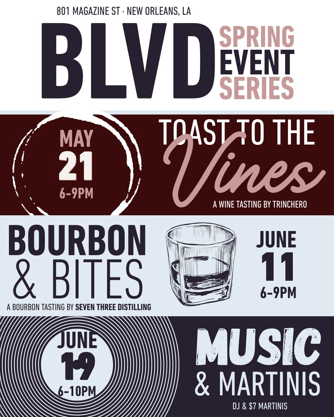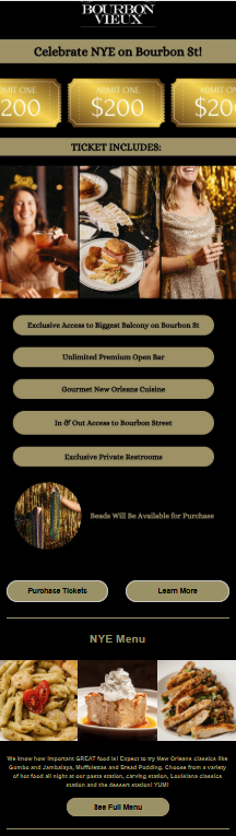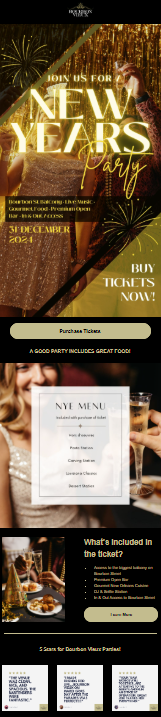 Sample of a Digital Campaign for Bourbon Vieux's NYE party. Assets include social posts and emails.